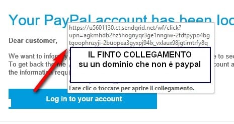 Basta posizionare il mouse sul link prima di fare click e vedere cosa appare. Nel nostro caso un sito che non è affatto paypal